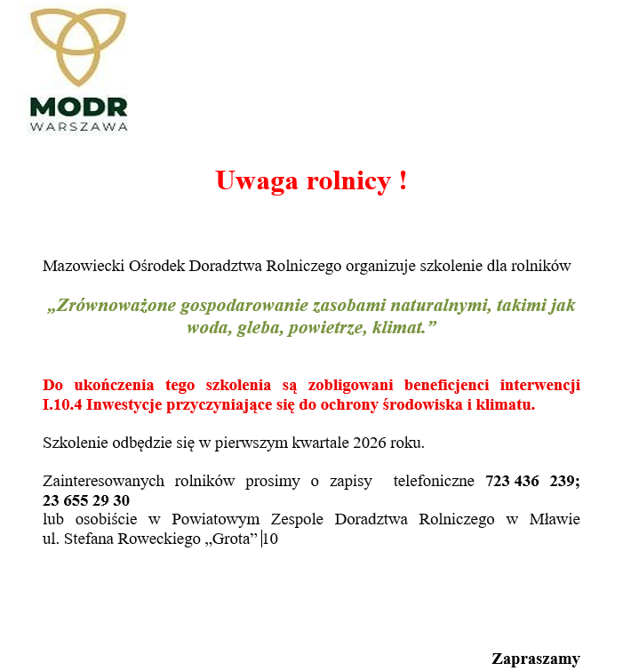 Doroczne spotkanie producentów zbóż - 2 grudnia 2025 r. Plońsk.