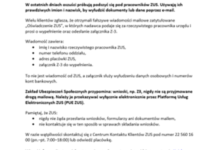W ostatnich dniach oszuści próbują podszyć się pod pracowników...