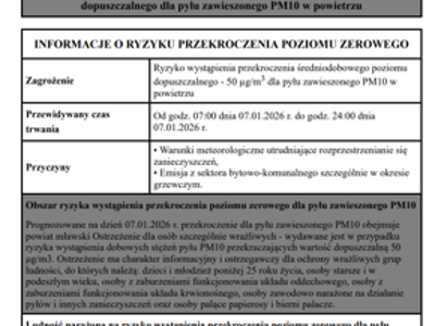 Powiadomienie o ryzyku wystąpienia przekroczenia średniodobowego...